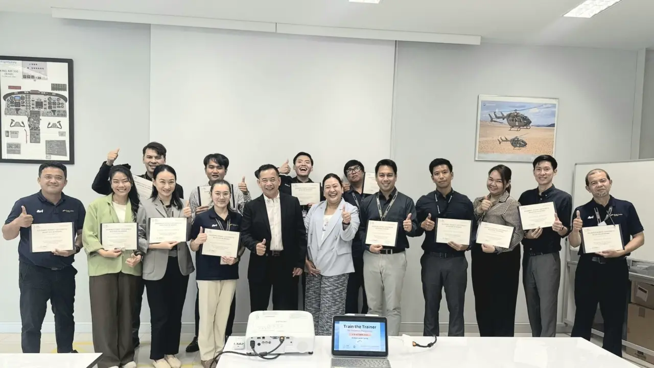 Congratulations on completing 'Train the Trainer' for aviation personnel of Siam Land Flying. This marks the successful completion of the five-day "Train the Trainer" course . And over the week, all participants gained valuable knowledge and guidance from experienced instructors, enhancing their ability to design and deliver effective aviation training. The commitment to professional growth ensures continued excellence in aviation education and safety.